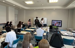 2週目は、プレゼンテーションの台本作りとスライドづくりの基本について学びました。プレゼンテーションにおいて有効なスライドを作るためには、具体的な数字を用いることが重要です。そこでGoogleフォーム使ったアンケートの作り方についても学習しました。授業後、学生自身がSNS等でアンケートを効果的に利用しているのを目にし、明確な数字を出すことが説得力のあるプレゼンに繋がることをよく理解していたと感じました。