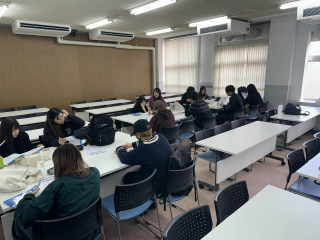完成した模造紙や発表方法にはさまざまな工夫が盛り込まれており、どのグループも創意工夫がみられる内容となっていました。学生たちが自ら考え、まとめる力を確実に身につけていることを改めて感じることができました。